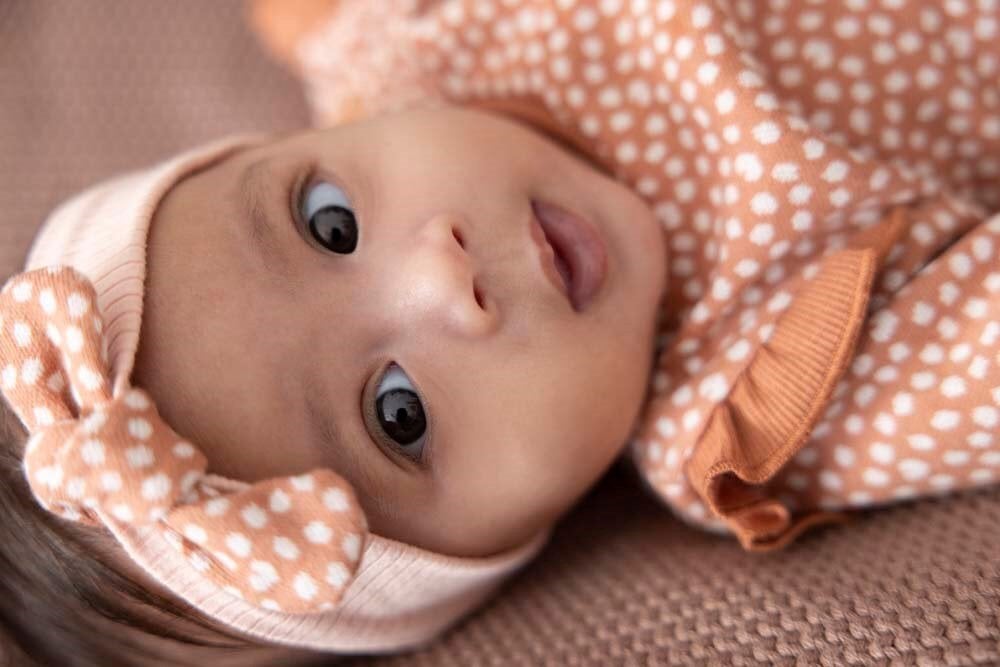 Please see our pictures for fabric detail…and a really cute baby