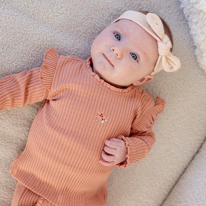 Crafted from 100% Organic Cotton in a 5×5 Rib Ajour Knit (220G) — a beautifully breathable fabric with delicate openwork texture that feels lightweight, soft, and gentle against baby’s skin while allowing natural stretch and all-day comfort.