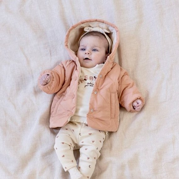 Lightly padded for extra coziness without bulk, this jacket keeps baby warm, comfortable, and free to move.