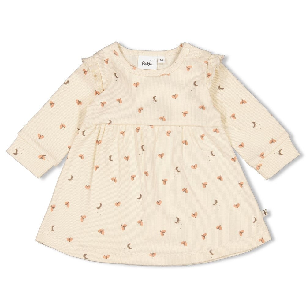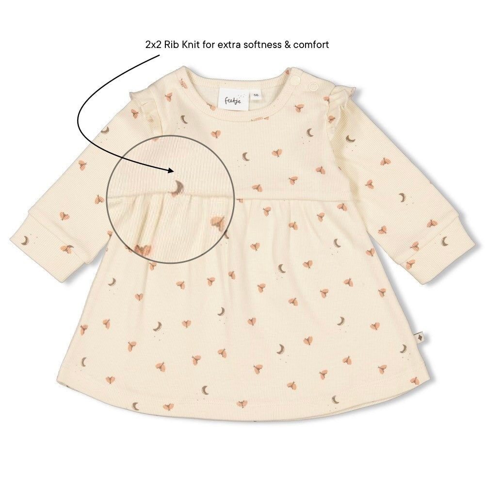 The fine rib structure gives the fabric gentle stretch and a soft, textured feel that’s cozy against delicate skin. Naturally breathable and flexible, it moves easily with every little reach and cuddle while keeping its shape beautifully.