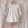 - Bunched and ruffle waist with self-fabric bow – easy on & off