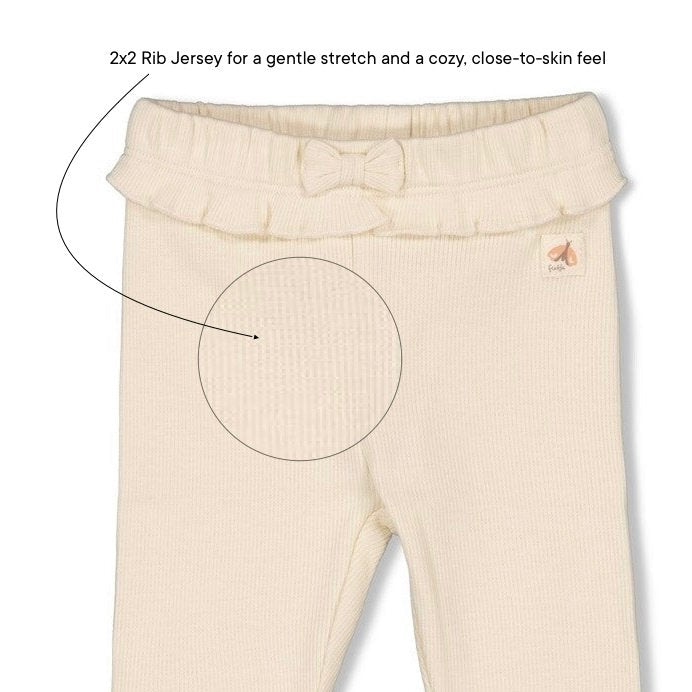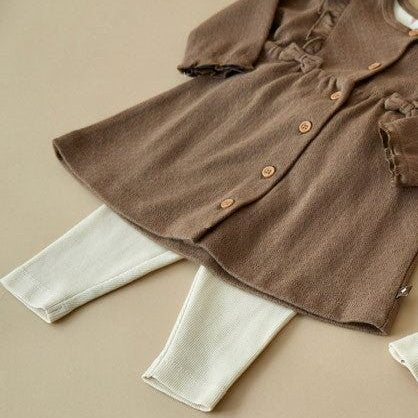 The fine rib structure gives the fabric gentle stretch and a cozy, close-to-skin feel that moves easily with every little wiggle and crawl. Soft, breathable, and naturally comfortable, this knit keeps babies cozy through play and discovery while holding its shape beautifully.