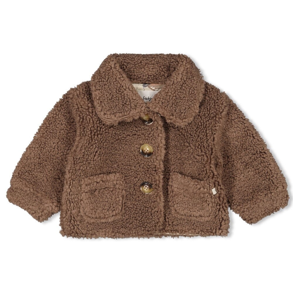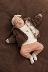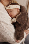 The teddy outer layer is plush and fluffy, wrapping baby in cozy warmth, while the inside lining has a velvety soft touch — like a little hug from the inside. Lightweight yet warm, this combination keeps baby comfortable through cooler days without feeling bulky.