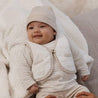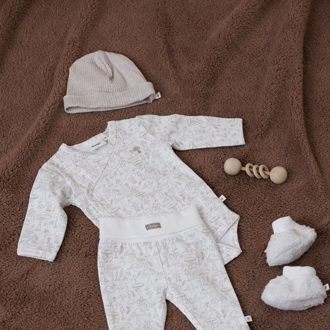 The drop needle rib adds a softly textured look with delicate vertical lines, giving the fabric charm while keeping it lightweight and breathable. Naturally stretchy and gentle on delicate skin, it moves comfortably with every little wiggle, crawl, and step.