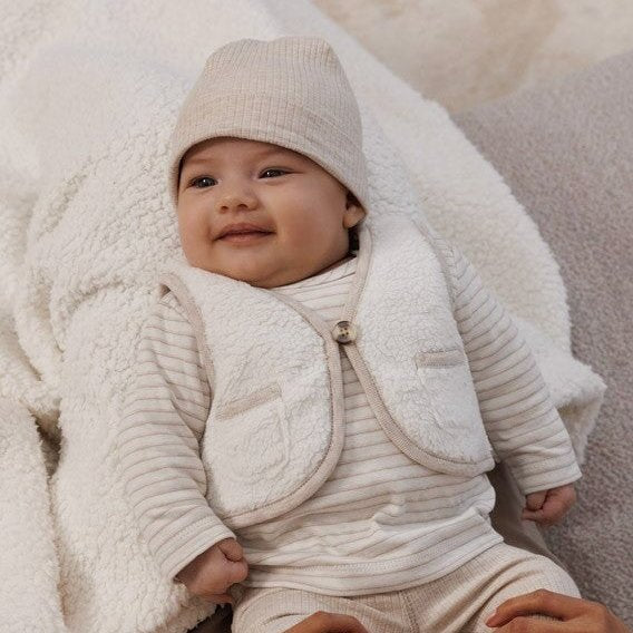 Our bonnet is made from 92% Organic Cotton and 8% Sustainable Elastic in a 4x2 Drop Needle Rib Jersey, 220G.