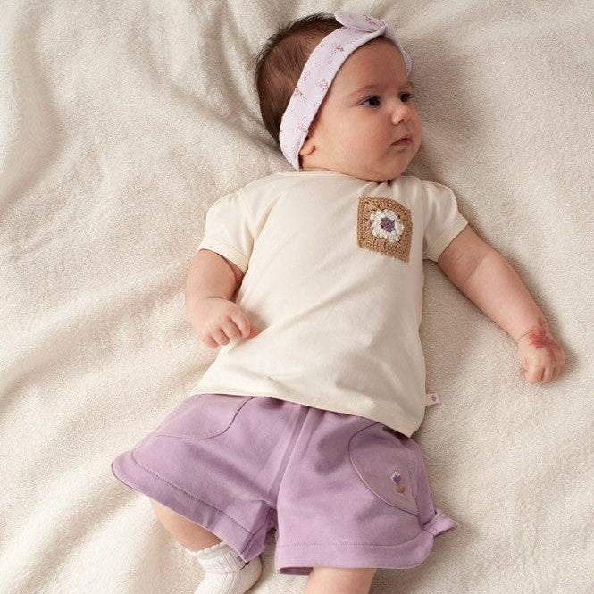 Ultra-soft organic cotton with a hint of stretch, sweet ruffled shoulders, and a charming crochet pocket that makes everyday play feel extra special.