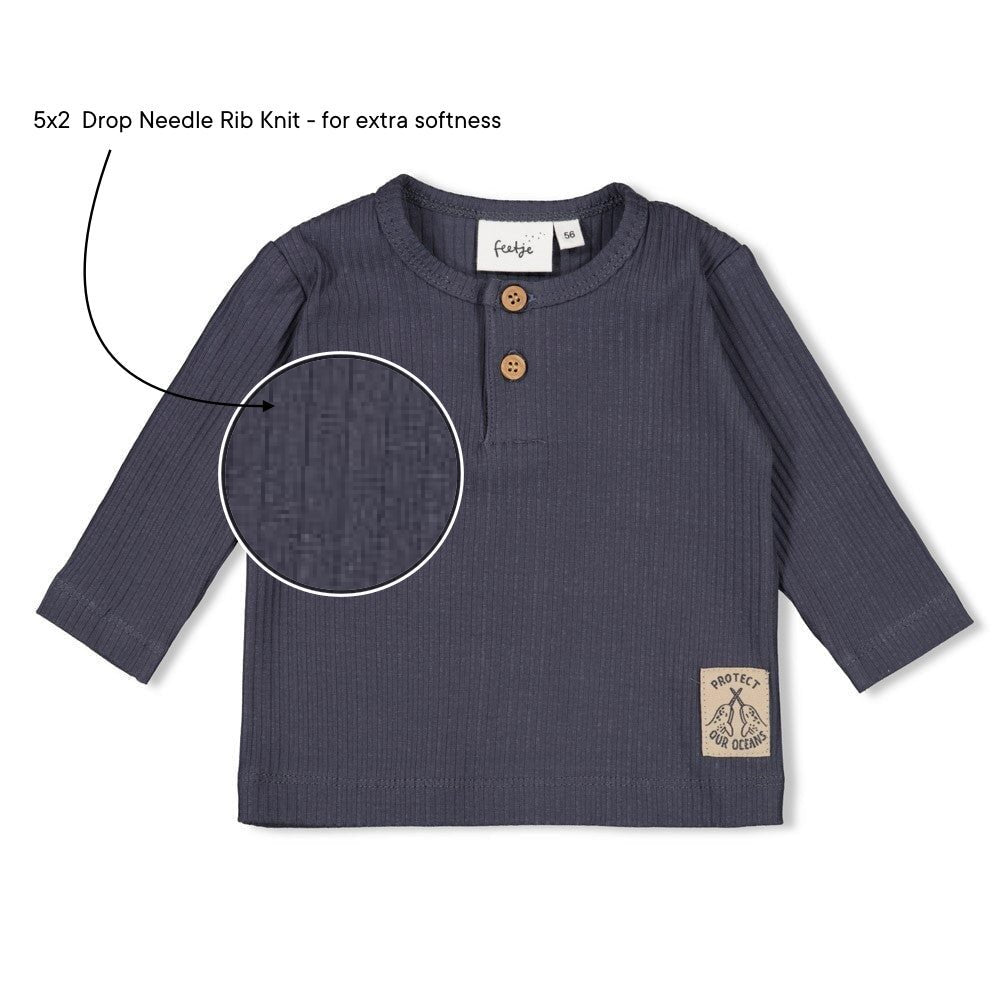 Narwal – "Protect our Oceans” 5x2 Drop Needle Rib Henley Collar Top