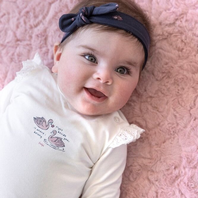 Smooth, breathable, and gently stretchy, this fabric moves comfortably with every wiggle and crawl while keeping baby cozy all day. Thoughtfully crafted with sustainability in mind, it blends everyday softness, flexibility, and care — perfect for layering, lounging, and play.