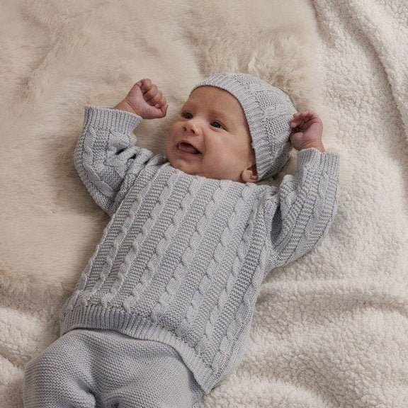 The cable knit texture gives a soft, homespun charm while offering gentle warmth and all-day comfort. With its naturally breathable and beautifully soft touch, this fabric keeps little ones comfy through every moment of play and discovery.