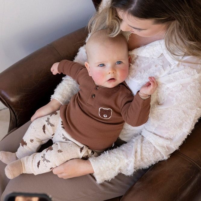 The smooth outer surface and soft looped interior create a cozy balance of warmth and breathability, perfect for everyday comfort. Naturally flexible and gently structured, the fabric moves easily with every little crawl and cuddle.