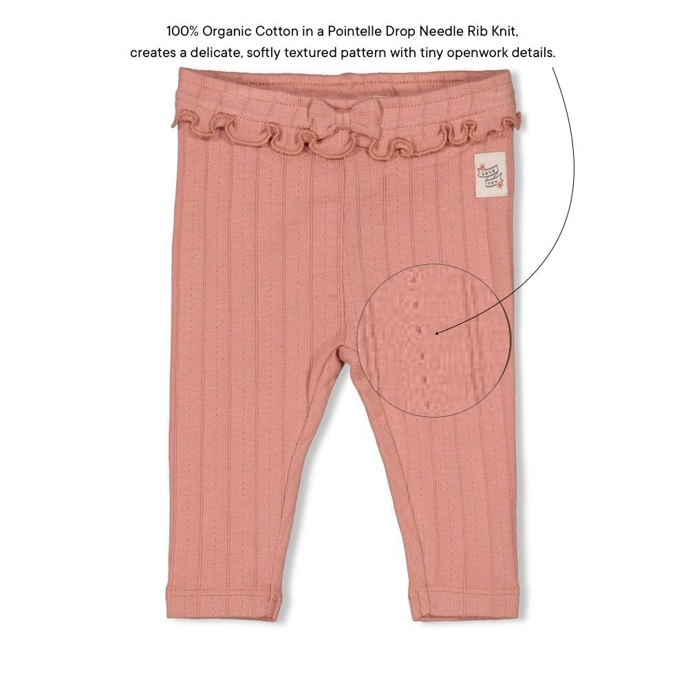 Our leggings are made from 100% Organic Cotton in a Pointelle Drop Needle Rib Knit, creating a delicate, softly textured pattern with tiny openwork details.