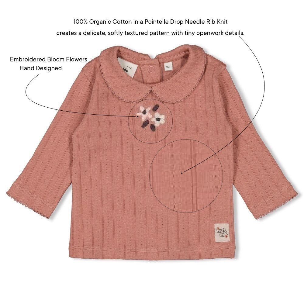 Woodland Bloom – Ribbed Pointelle Peter Pan Collar Top