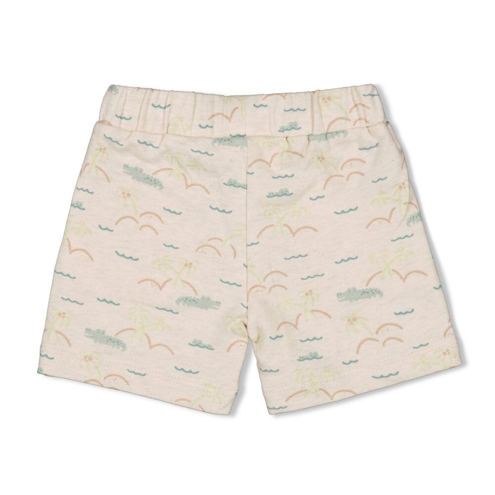 The design is elevated by a playful all-over desert-inspired print featuring charming crocodiles and palm trees. A soft, elasticized waistband ensures a gentle and secure fit for easy pull-on dressing, while the convenient front pockets allow for storing tiny treasures found along the way. Finished with a clean silhouette and the signature "You Croc My World"branding at the waist and "Magical Twinkle" side tab label, these shorts perfectly capture the spirit of outdoor exploration.